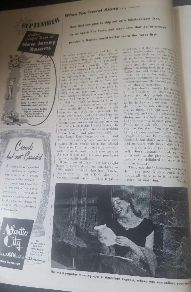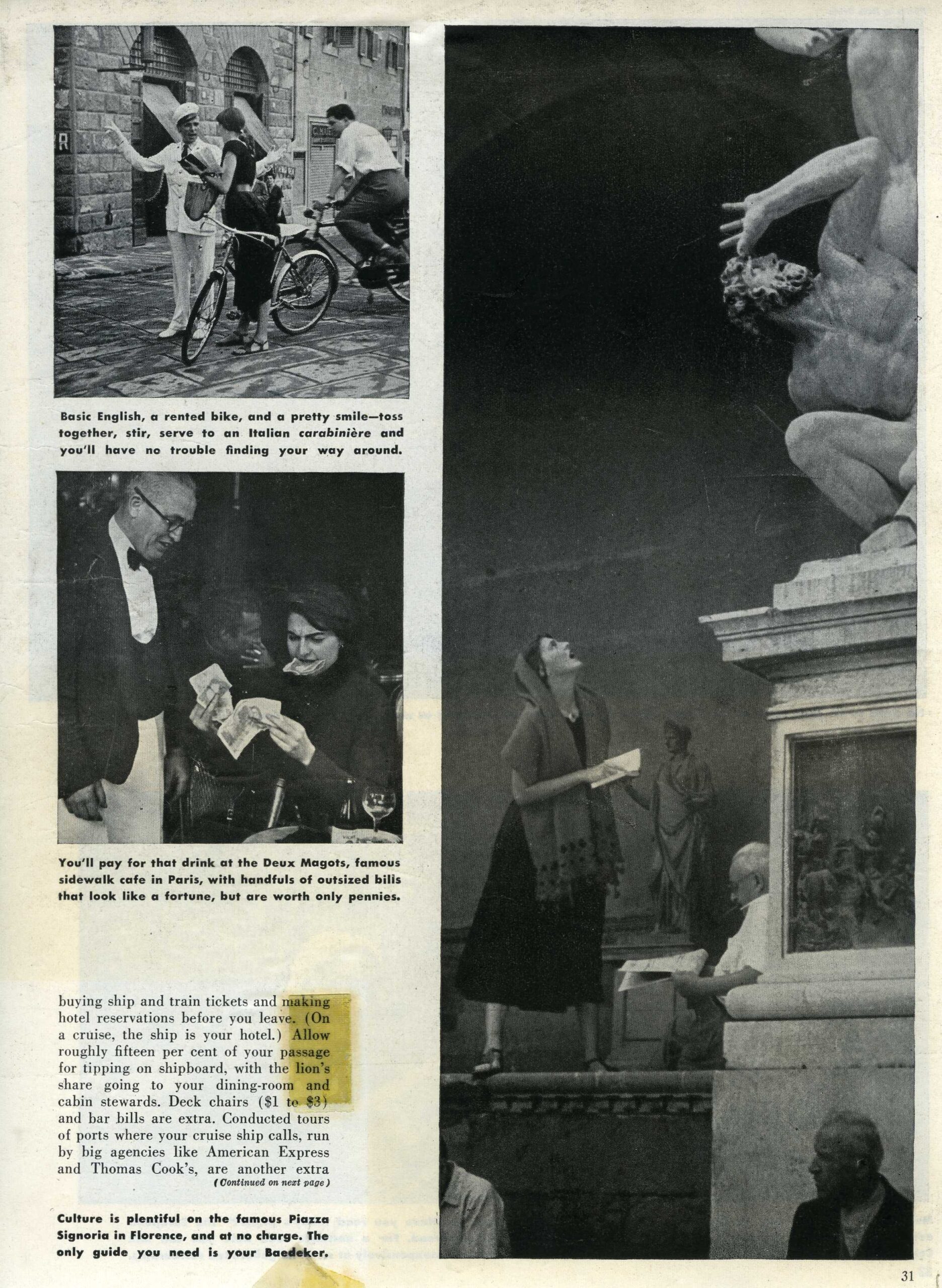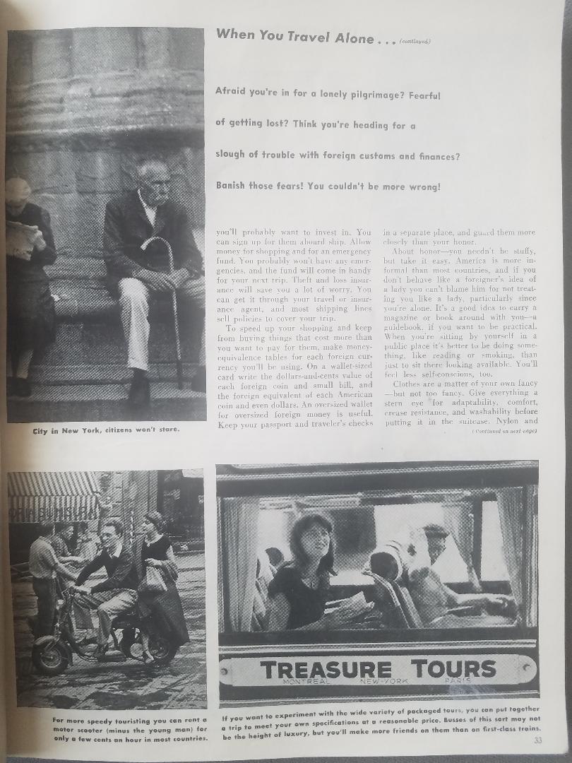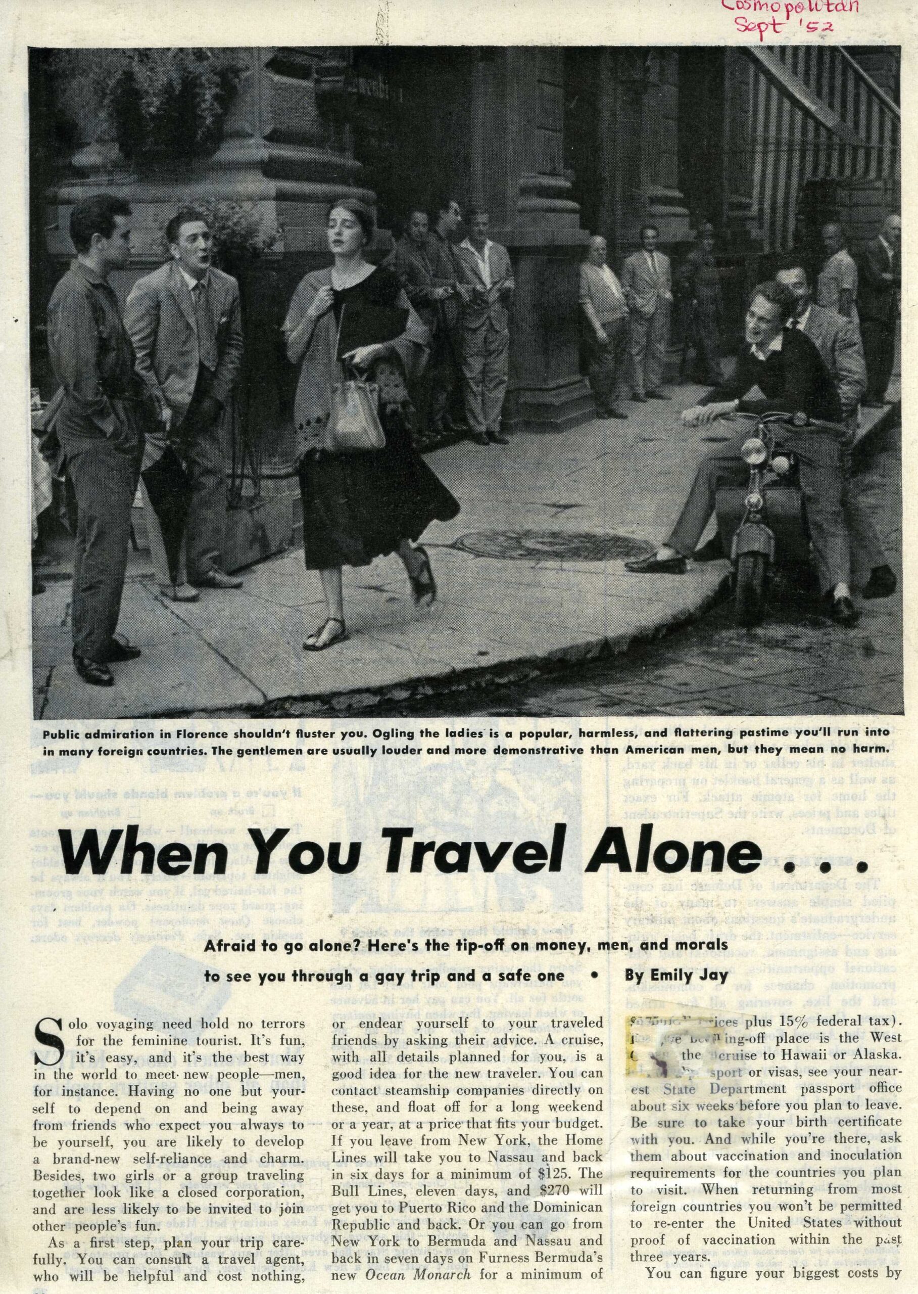 American Girl in Italy series – When You Travel Alone – Cosmopolitan, September 1952