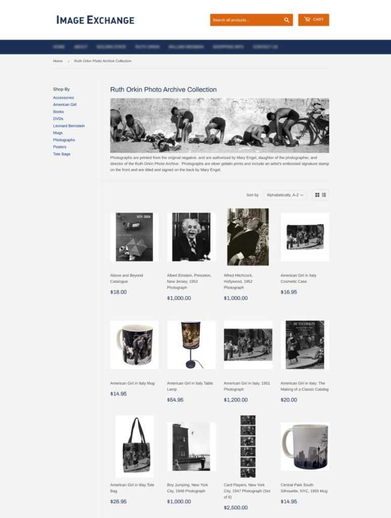 The Ruth Orkin Photo Archive has partnered with Image Exchange to make her work available for purchase as silver gelatin prints, books, posters, and assorted accessories.